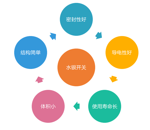 2、通斷所需的外力小。水銀是惟一能在常溫下保持液態(tài)的金屬,它的表面張力和比重都較大,只要稍加外力使水銀開關(guān)產(chǎn)生傾斜,水銀便可移動(dòng),使開關(guān)實(shí)現(xiàn)通斷。