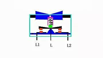 三腳的船型開關(guān)結(jié)構(gòu)如圖所示,中間的腳為彈性公共點,兩側(cè)的一個是NC(常閉)點,一個是NO(常開)點。