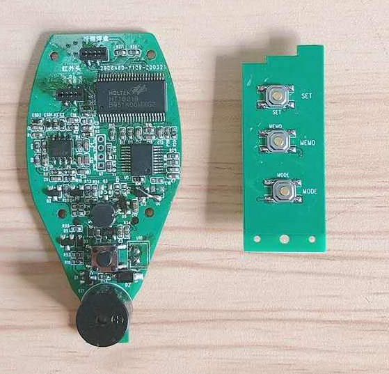 通過上面可以看出,體溫槍的結(jié)構(gòu)不算復雜,上面的兩款按鍵開關(guān)就是我們東莞宏聚電子常用的輕觸開關(guān),一款是6*6和一款是4*4的輕觸開關(guān),6*6的用在掃描啟動手柄上,4*4用在功能選擇上面。