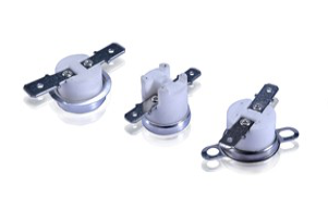 帶外殼的雙金屬片溫控器;單刀單擲,工作于阻性負(fù)載下。廣泛應(yīng)用于咖啡壺、飲水機(jī)、多士爐、微波爐、電暖器、便攜式冰箱等多種小型家電中作為溫度控制或溫度保護(hù)之用,是加熱類小家電中的重要器件。